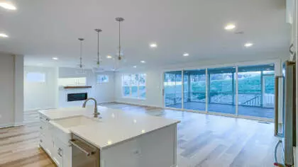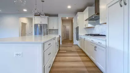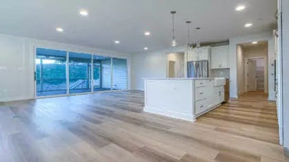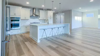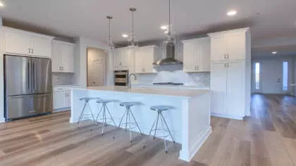 The Hathaway modern farmhouse home features one level living at its finest with a spacious gourmet kitchen, studio (home office), 2-car garage, three bedrooms, three full baths, and main level powder room. Optional spaces in the lower level include a fourth bedroom and bath, fitness room, retreat room for media or hobby space, and extended recreation room for gaming or pool table.