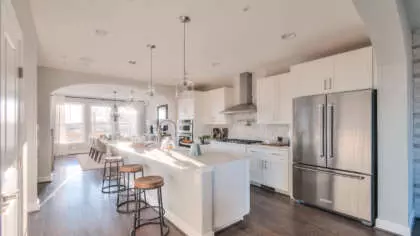 The Vanderbilt features four finished levels with the addition of our popular rooftop terrace. The main level with an open floor plan and deck off the great room is ideal for entertaining providing a seamless flow between the indoor and outdoor living areas. Included features include a Gourmet Kitchen, Dining Room and Great Room with fireplace. The kitchen provides plentiful countertop space with quartz countertops and white cabinets, grand island, side server, and a Whirlpool stainless steel gourmet appliance package.
