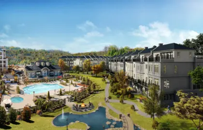 From the rear of the property at Quarry Springs, this is what the addition of the Wormald townhomes will look like, with meandering paths, water falls and fountains, overlooking the community pool and clubhouse. Just breathtaking!
