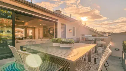 Atop your new townhome is your Four Seasons Retreat, a truly unique rooftop terrace that invites you to indulge in outdoor living all year. With ease, you can transition your terrace from glass-enclosed to screened or open air. The Four Seasons Retreat is at once breathtaking and life-affirming.