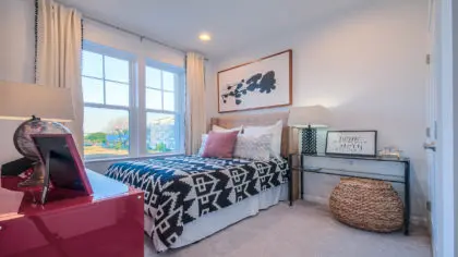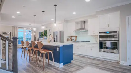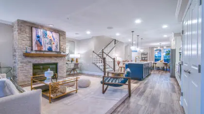 The Georgetown Collection offers open, modern floor plans featuring four finished levels, gourmet kitchens with spacious island countertops, bay windows, entrance porticos, grand stairwells, signature “Tower Room” with 12 ft. ceilings, brick elevations, 3 bedrooms, 3.5 baths, and 2,656 square feet. Enjoy our popular lofts with rooftop terraces. Community amenities include a stately clubhouse, pool, playground and common areas.
