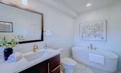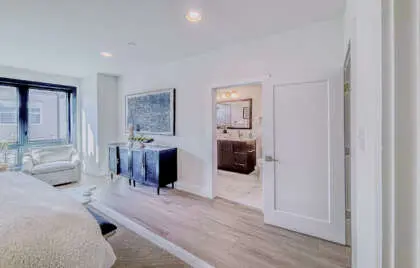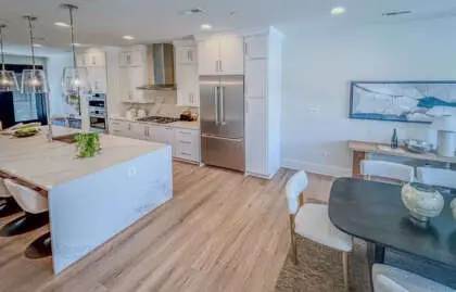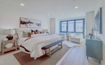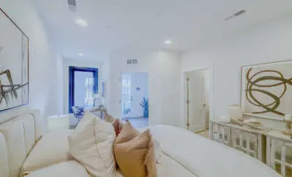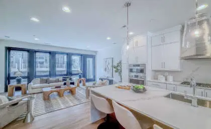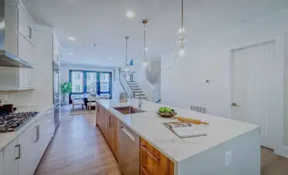 This stunning four-level home encompasses 2,800sq feet. thoughtfully designed space, featuring three bedrooms, three full baths, and two powder rooms. The chef’s kitchen is a masterpiece, featuring custom cabinetry, quartz countertops, and a 10-foot island—an inviting centerpiece for family and friends. Throughout the home, 7-foot black interior windows and soaring 10-foot ceilings on the main level enhance the sense of space and sophistication.