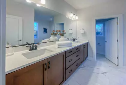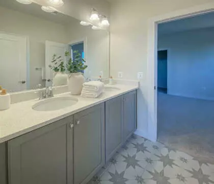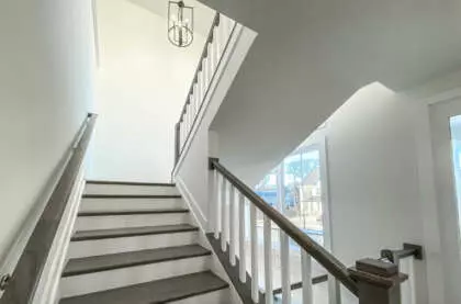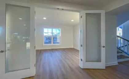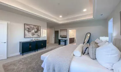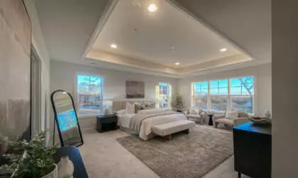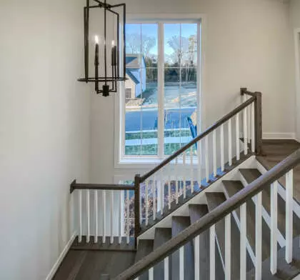 The Beckham offers 5 bedrooms and 4½ baths, including a fully finished lower level with wet bar, recreation area, fitness/media room, private bedroom, and full bath—ideal for entertaining or extended living.