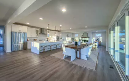 Enjoy indoor-outdoor living on the screened porch with cascading glass multi-slide door, or relax in the oversized Great Room featuring a stunning modern fireplace with shiplap surround.