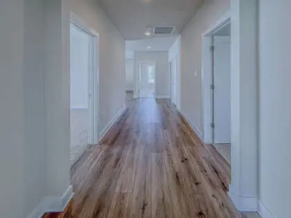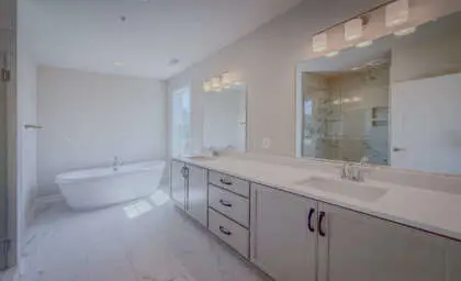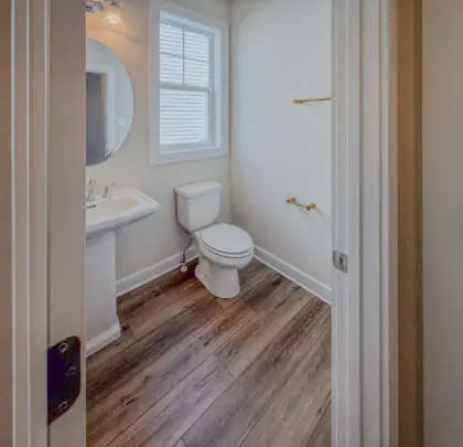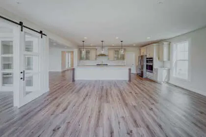 The owner’s bath is luxurious, with a soak tub, rain shower head, sport shower, and heavy glass shower door. LVP flooring is included on the main floor, upper hallway, and loft.