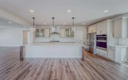 This home includes high-end features, such as a built-in central vacuum system throughout the house. You’ll find premium finishes everywhere, including an enclosed studio with 8’ French doors, a sunroom with solarium windows and barn doors, and a cozy gas fireplace in the great room. The kitchen features upgraded cabinets and island, Bosch dishwasher, and backsplash, along with upgraded countertops in the kitchen, owner’s suite, and all secondary baths.